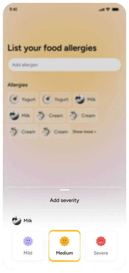 Allerwell checks every meal against your dietary needs. If something doesn't work for you, you'll know before you log it.