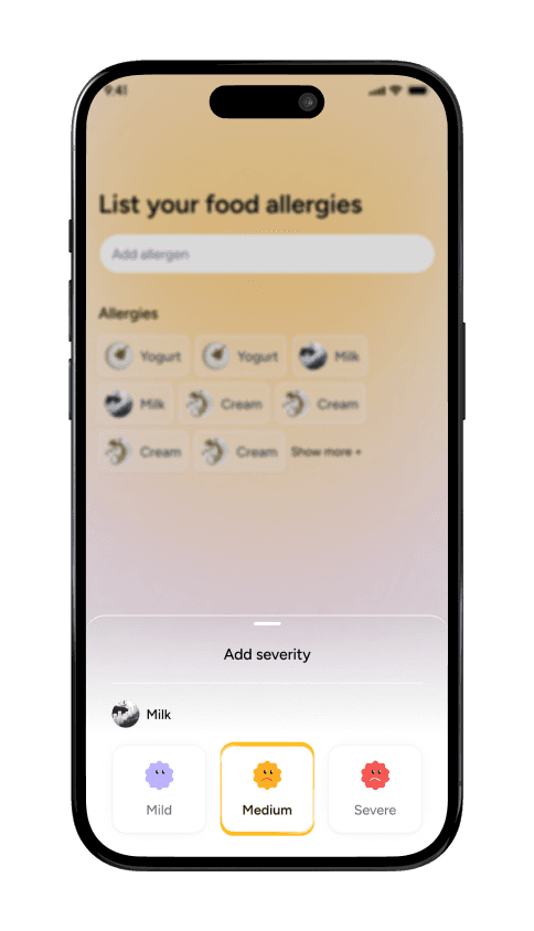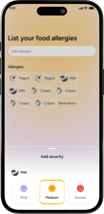 Configure your unique health profile with precision. Define severity levels, from mild intolerances to severe. Receive alerts tailored to your medical needs.